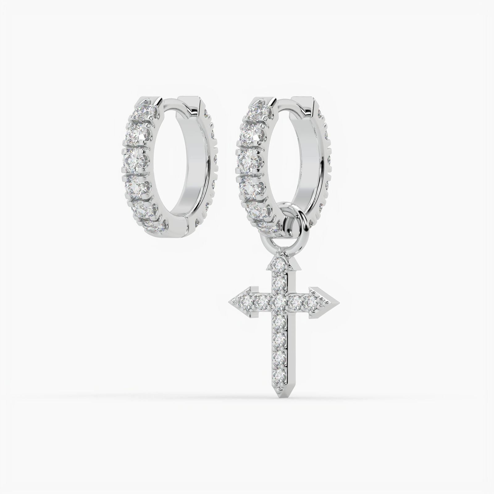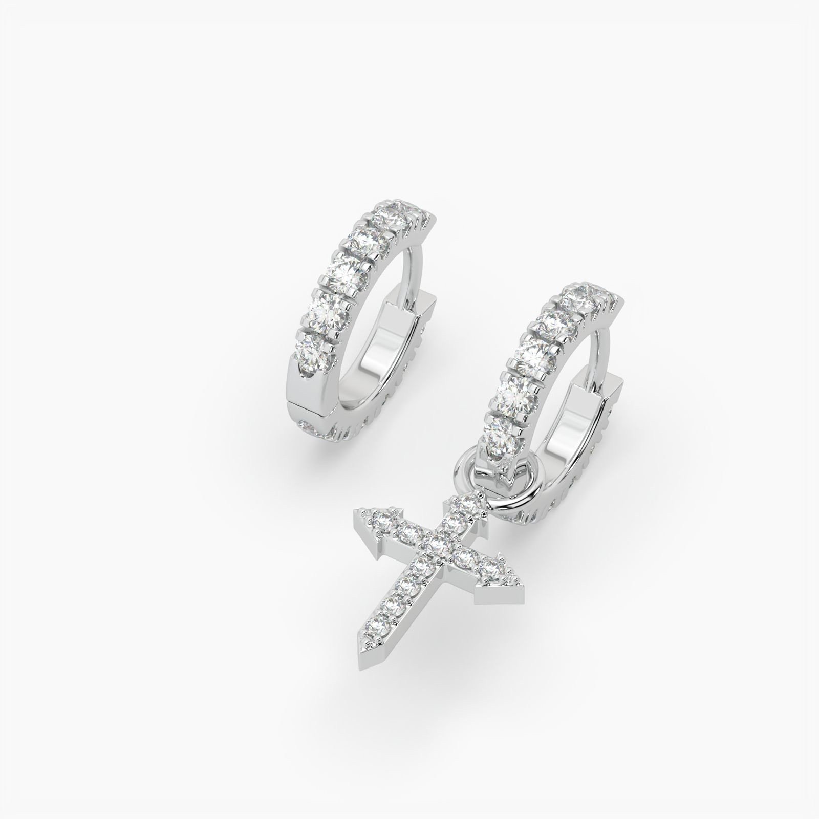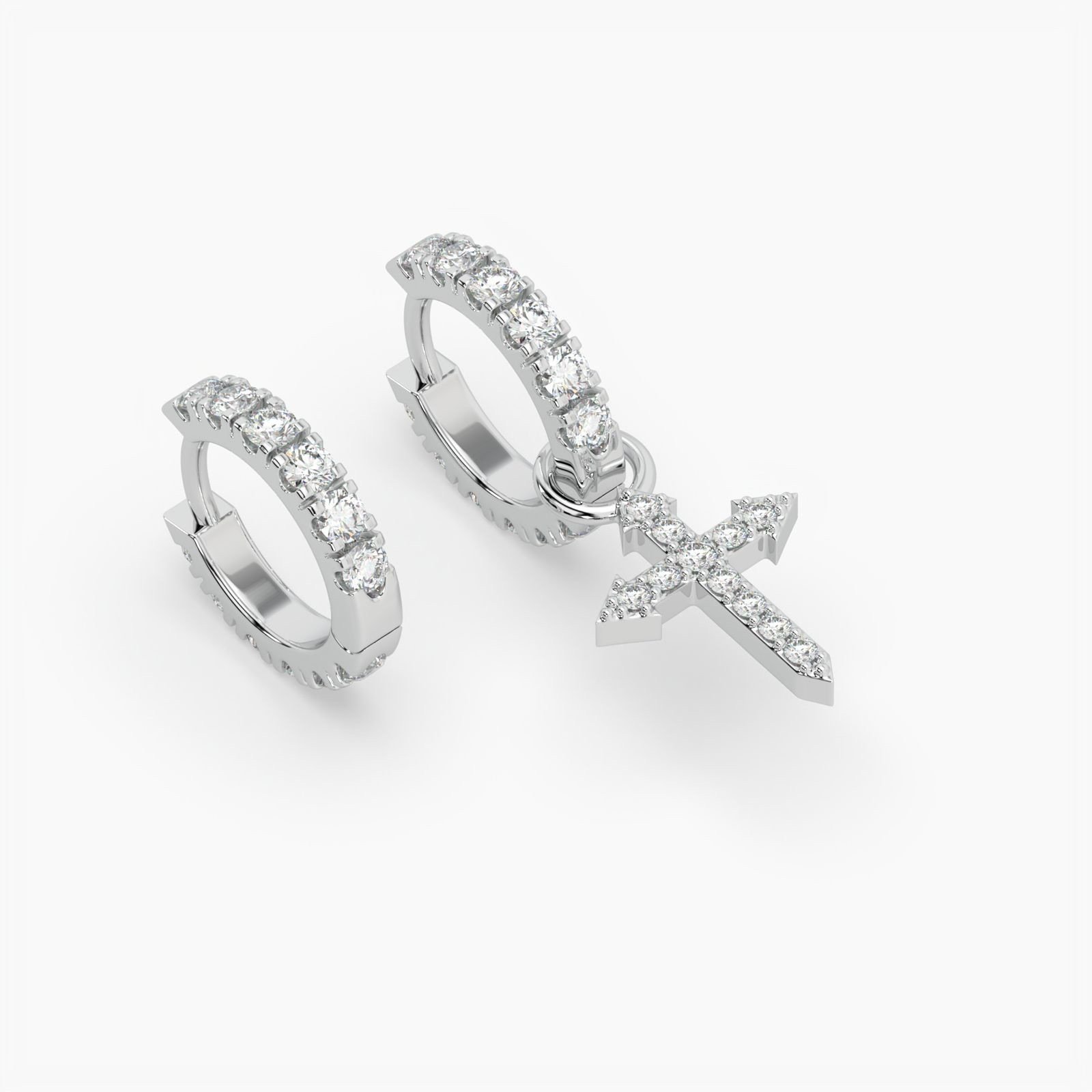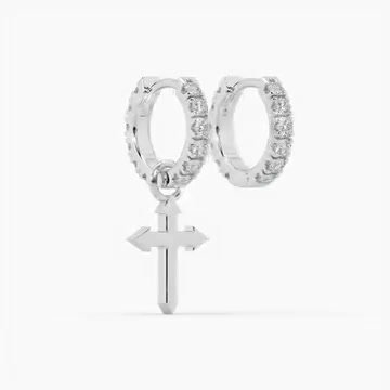 Design Stone-set Huggie Hoop with dangling Dagger-Cross charm